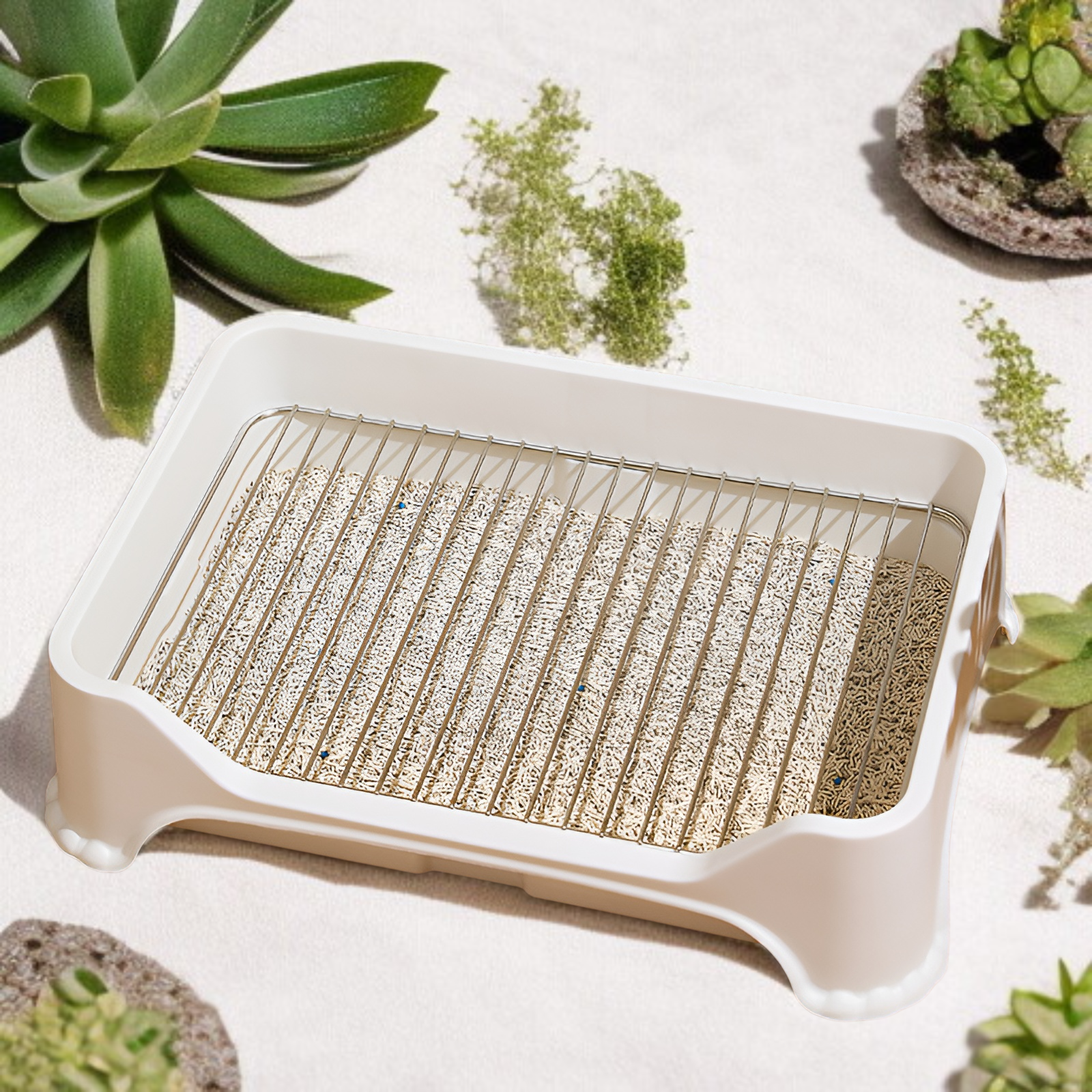 ● ステップトレー構造でトイレのしつけがしやすく、メッシュ付きで足や床の汚れをしっかり防止します。